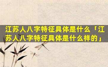 江苏人八字特征没有公开明确的研究或共识。因此,无。法具体回答江苏人 🦁 八字特 🐎 征是什么