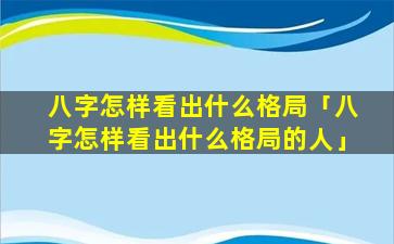 财格八字 🐧 格局的判断方 🦅 法