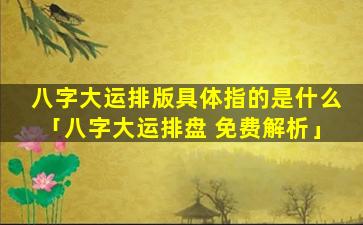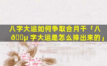 八字大运排版通常按五 🦅 行相生相克的规律,从,出生之日起顺次排列以供人们查看自己一生中各个阶段的运势吉凶通。过排大运,可,以了解不同年份的流年运程预测人生中的重大事件事、业、发、展。婚姻感 🐕 情健 🐅 康状况等