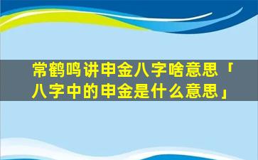 常鹤鸣讲申金八字 🦄 的意思:
