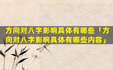方向对八字影响的具体内容 🐼 主要 🌹 包括以下方面: