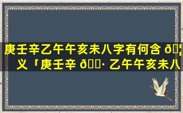 庚 🐛 壬辛乙午午亥未八字的含义: