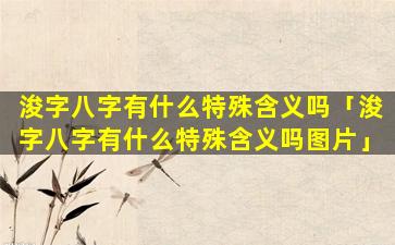 浚 🐱 字在女孩八字中的 🕸 特殊含义: