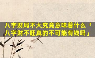 八字财不旺是指一个人八字中与财富相关的神煞、五行等因素比较弱,说 🌴 明此人先天对财富的吸引力和驾驭能力较差。