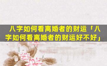 八 🐶 字 🐕 离婚者 🐦 的财运