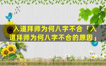 “入道拜师为何八字不合”并不是一个广泛认同的说法。通常 🐅 情况下拜师,学。艺并不会考虑八字是否相合