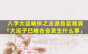 此说法不准确,八字大 🕊 运暗 🐞 拱之法并不源自梁湘 ☘ 润。