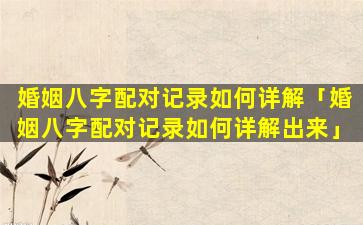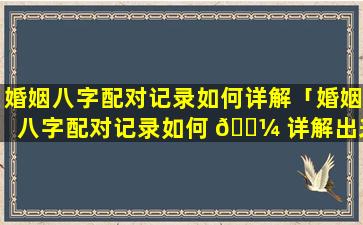 婚姻 🐘 八字配对记录 🐞 详解 🦟