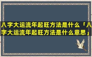 简介八字大运流年起旺方法是一种基于八 🐈 字命理的推算方法,用于预 🌾 测 🐬 人的运势旺衰。