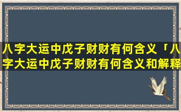 戊子大运中 🐼 财星藏干的含 🐯 义
