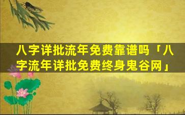 八字流 🌺 年详 🦍 批免费 🌹 终身鬼谷网