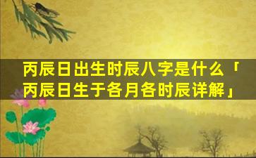 丙辰日生 🐘 于各月 🌸 各时辰详 🌼 解