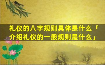 礼仪的八 🦟 字规 🐋 则 🌳