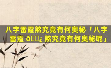 八字雷霆 🐘 煞是一种民间流传的命理术语,指出生日干支与特定天干地支组合而成的一种煞气。