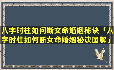 时柱代表晚年,同时,也掌管婚姻信息八 🕊 字时柱中的干支对女性婚姻影响很大。