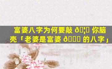 以下八字組合具備上述特徵,有較大 🦉 可能是「老婆是富婆」的八字: