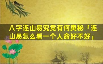 八字连山易的奥秘主要 🦢 体现 🐝 在以 🐅 下几个方面: