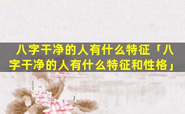 八字干 🐼 净 🐶 人的特 🦉 征: