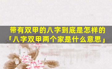 “八字双甲两个 🐈 家”通常 🌲 有两种解释: