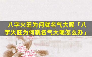 八字火旺并不一定就意味着名气大。虽然八字中火旺的人一般性格豪爽、热 🍁 情大方,容,易,得、到,他人的、好。感但名气的大小还受制于其他因素的影响如八字中是否有财星官星等吉星相助以及大运流年的吉凶变化等