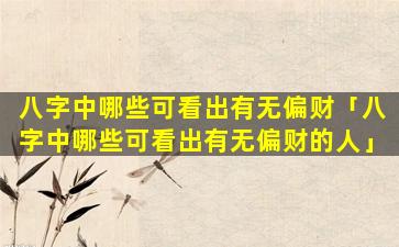 八 🐵 字中看偏财的要点: