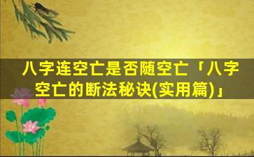 八字组合好,空,亡的五行 🕷 不利者反 🌾 主吉。