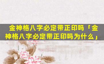 金神格 🐕 八字不一定带正 🌼 印 🐱 。