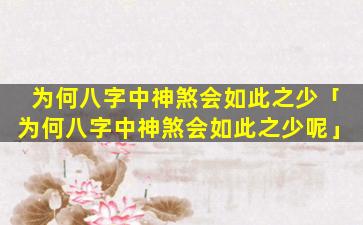 八字中的神煞并非很少,而是众多。因,为神煞,是,古。代命理学家出来的吉凶征象而这些征 🦁 象的取法繁多且各家派别有所不同因此八字中的神煞数量庞大