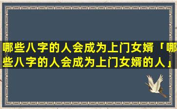 根据传统的八 🌷 字命理学,以 ☘ 下八字特征 💐 的人有可能是上门女婿: