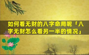 如何查看女性无财 🐟 的八 🦉 字命 🦋 局