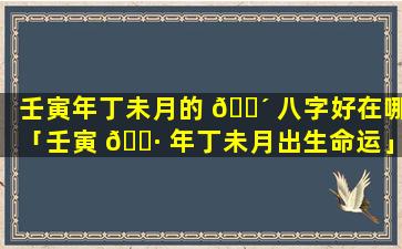 八字命 🦊 运分析:丁未日出生