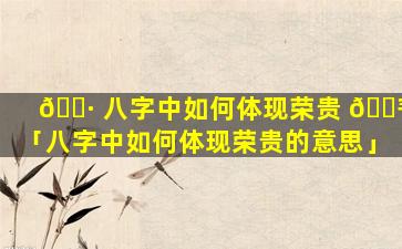 八字中 🌿 体现 🐒 荣贵的特 🌾 征: