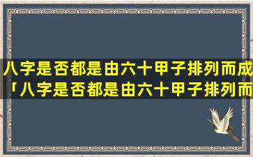 这句 🐬 话是错误的。八字并非完全由六十甲子排列而成而是,以,日柱为基础 🐠 结合 🐅 年柱、月柱、时,柱。形成一个完整的四柱八字