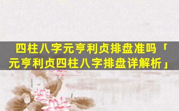 是否准确关于“元亨利贞排盘”是否准确,目前没有科学依 💮 据或广泛认可。其,本,质。上是一种命理预测方法基于 🐒 中国传统的阴阳五行学说具有较强的主观性和经验性