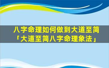 大道至简大道至简,意,指大道至理往往简单明了不复杂繁琐。八,字,命,理。象法也是如此其本质就是通过观察八字中的五行生 🐧 克制化关系以及干支之间的相互作用来推断一个人的命运趋势