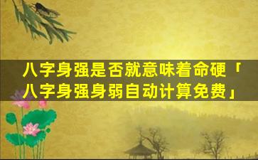 因此,八,字 🌴 身强是 🐘 否意味着命硬还需要结合其他因素综合判断。不。可一概而论