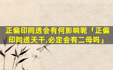 需要注意的是,八,字中正 🦋 印和偏印同透的具体影响还需要结合八字的其他因素来综 🐱 合 🦁 判断如命局的五行平衡、格局组合等。