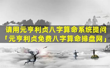 元亨 🌲 利贞八字算命系 🍀 统提问示例 🌴 :