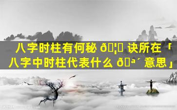 生辰八字时 🐯 柱在命理学中的作用是很大的,它影响着命主后 🦈 天的运 🌻 势。
