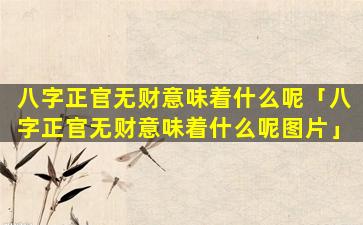 八字正官无财意味着什么 🌺 呢 🌻 图片