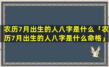 农历七月出生的人的八字命格取决于具体的出生日期、时辰和 🌼 性别。不。能仅凭农历七月出生就确定一个人的命格
