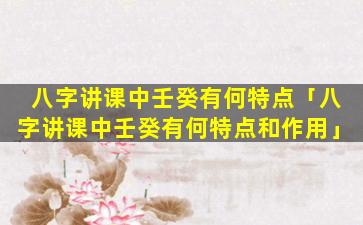壬癸 🐒 在八字中的特 🐒 点 🦋 :