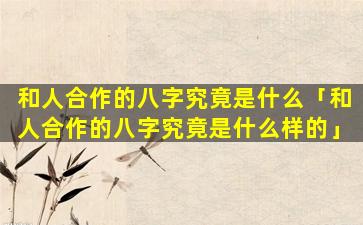 和人 🪴 合作 🦍 的八 🐶 字