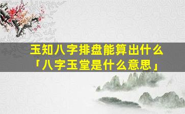 八 💐 字玉堂 🐅 的命理 🌹 特征