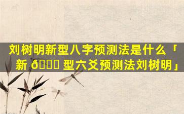 刘树明新型 🐋 八字预测法,又称“数理斗数八字预测法”,是一种根据姓名笔画数、出生年月日时辰数等信息进行八字预测的方法。