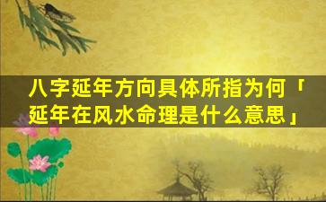 在风水命理中,“延 🕷 年”指,八,字命局 🦊 中的一个五行属性它是八字中日柱的天干代表后天的努力和作为。