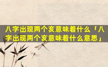 八字 🦢 中出现两 🦄 个亥 🐈 的含义: