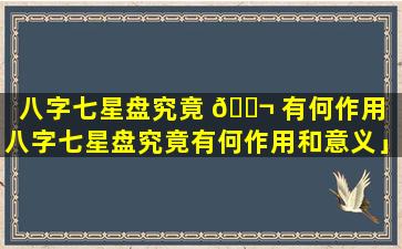 意义八字七星盘在 🦈 命理学中 🐠 具有重要的意义 🐬 :