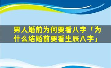 男人婚前看八字的 🦅 主要原 🐵 因如下: