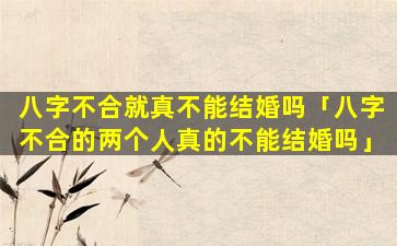 综合考虑:因此,是,否八字不合就真不能结婚不能一概而论 🐧 。如,果八字不合需要结合以下因素 🌲 综合考虑: